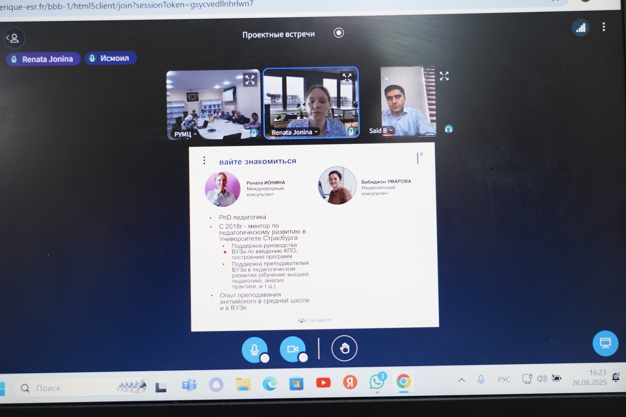 Дар ҷараёни вохӯрӣ масъалаҳои марбут ба таҳияи барномаҳои таълимии нав ва мутобиқгардонии онҳо ба талаботи замони муосир мавриди муҳокима қарор гирифтанд. Аъзоёни гурӯҳи корӣ натиҷаҳои марҳилаи аввалро мавриди таҳлил қарор дода, пешниҳодҳои мушаххас ҷиҳати такмил ва рушди минбаъдаи барномаҳо ироа намуданд.