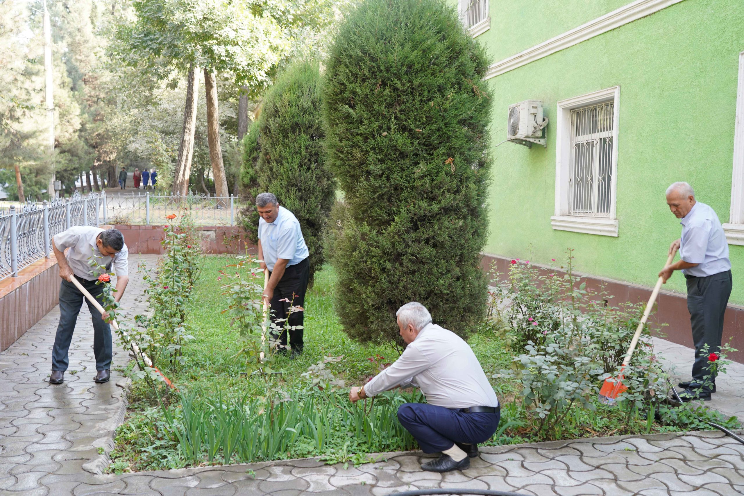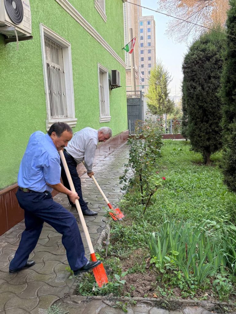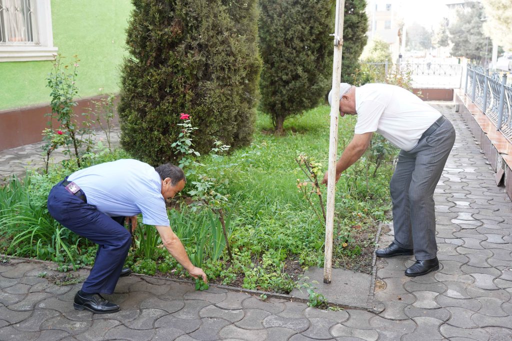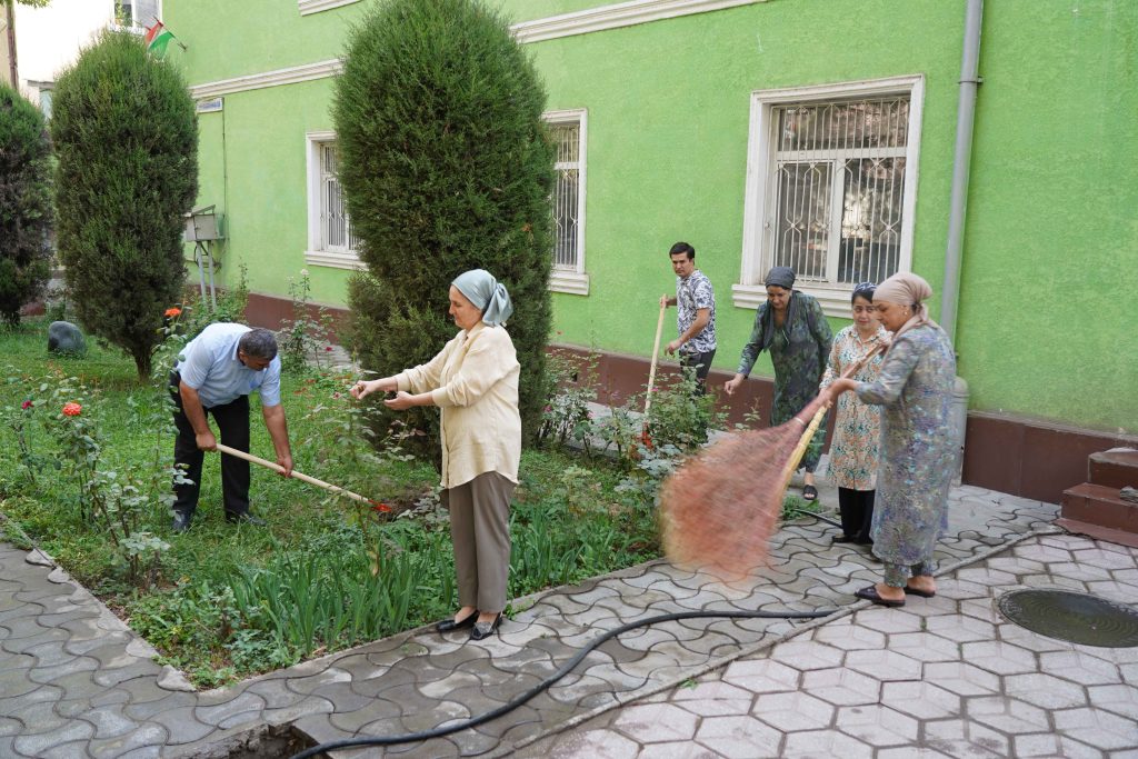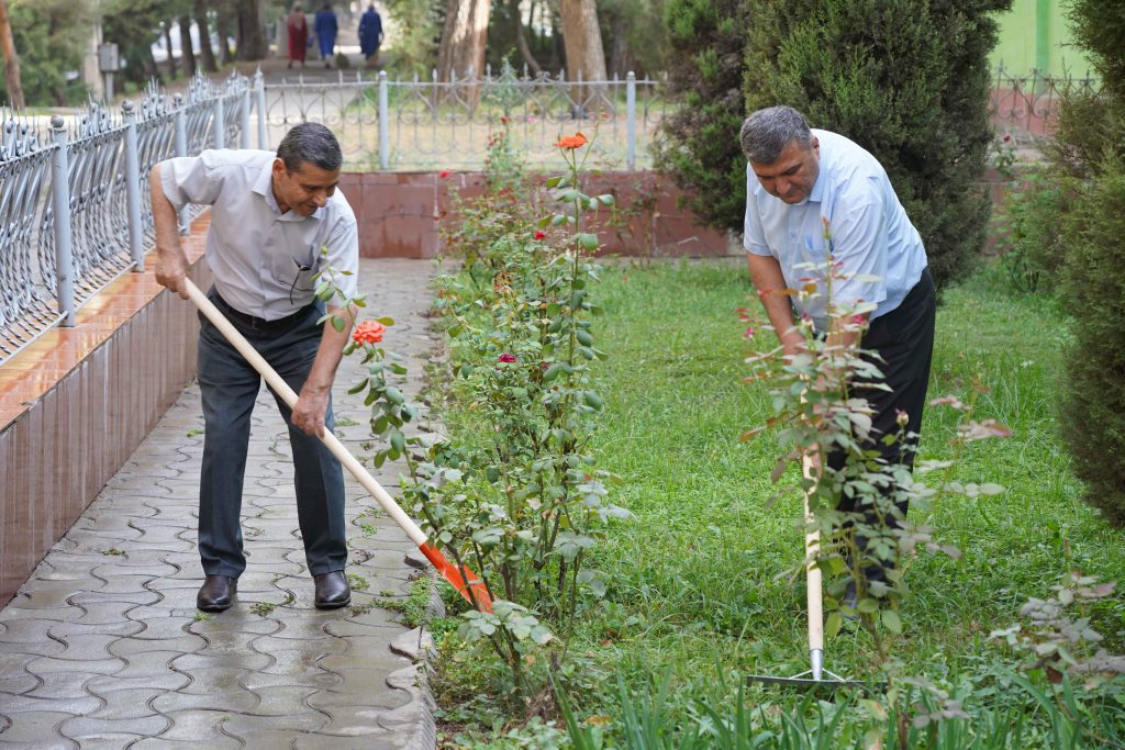 Дар рафти баргузории шанбегӣ тамоми ҳудуди дохилӣ ва берунии муассиса аз партовҳои маишӣ, хасу хошок ва алафҳои бегона тоза карда шуд. Кормандон гурӯҳ-гурӯҳ тақсим шуда, роҳравҳо, гулгаштҳо ва майдончаҳои назди бино аз нав тоза ва озода гардиданд. Ин иқдом муҳити муассисаро тоза ва солим гардонд. Ҷиҳати зебо ва сабз гардондани атрофи муассиса гулу гулгаштҳо ва ниҳолҳои сояафкани атрофи муассиса ба тартиб дароварда шуданд. Ин амал ҳамчун рамзи сабзу хуррамӣ ва ҷовидонии Истиқлолият дониста мешавад. Ҳамзамон, дарахтони мавҷуда аз нав сафед карда шуданд, ки ҳам намуди зоҳириро зебо сохт ва ҳам барои муҳофизати дарахтон аз ҳашароти зараровар аҳамияти калон дорад. Дар саҳни муассиса парчамҳои давлатӣ, шиору овезаҳои ватандӯстӣ ва рамзҳои миллии ифтихорӣ гузошта шуданд. Ин иқдом рӯҳияи идона ва муҳаббат ба Ватанро миёни кормандон боз ҳам тақвият бахшид.
