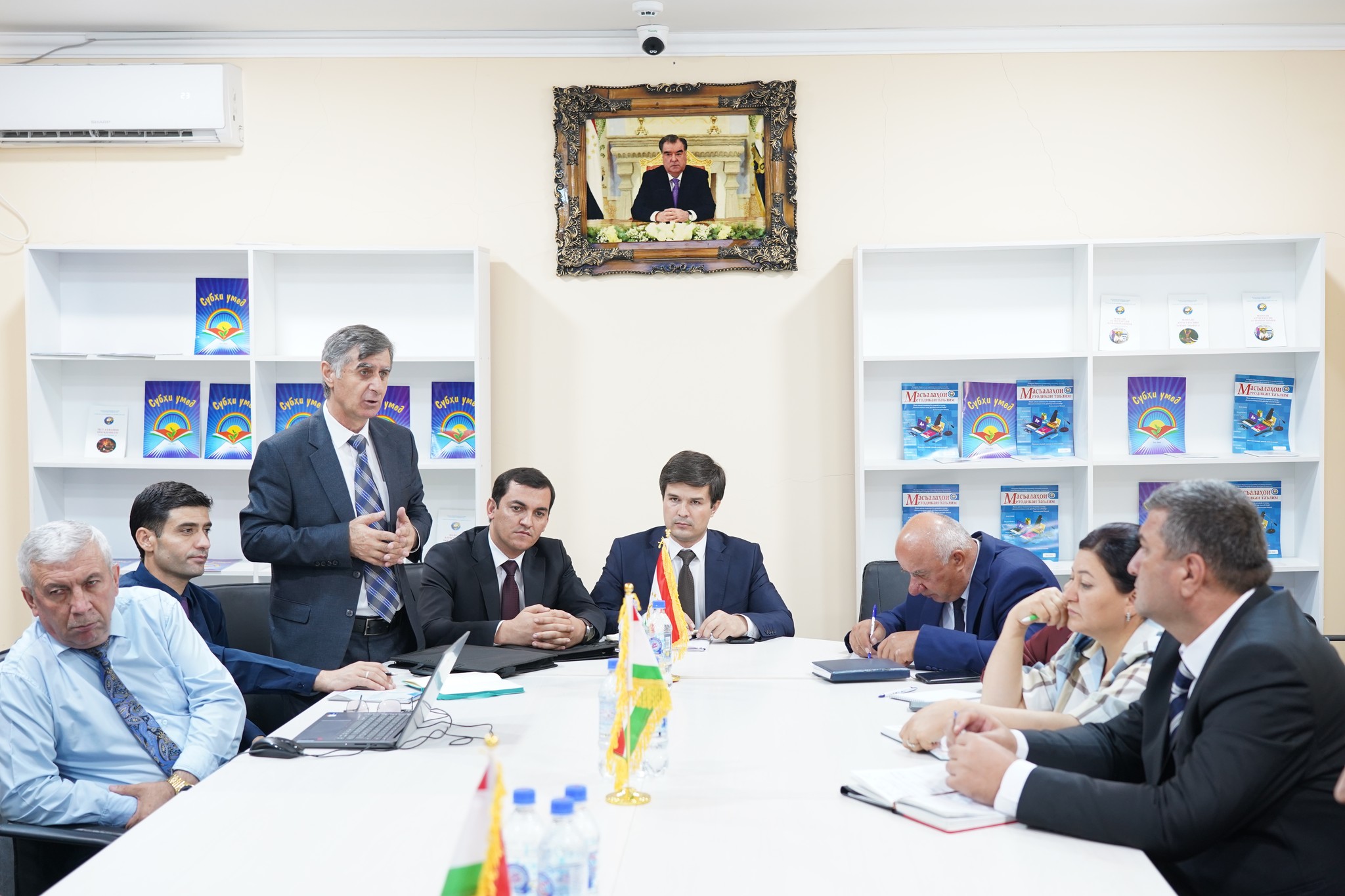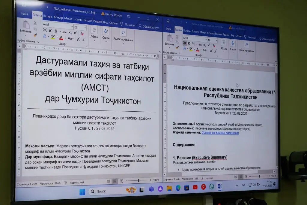 22 сентябри соли 2025, дар ДОИРАИ Лоиҳаи муштараки БИР /ФҲИР-ШГТ- ФОРБ оид ба дастгирии татбиқи Стратегияи миллии рушди маориф дар Ҷумҳурии Тоҷикистон (Марҳилаи II) вохӯрии муҳими корӣ бо иштироки мушовири байналмилалӣ, мушовири миллӣ, гурӯҳи корӣ оид ба арзёбии миллӣ, намояндагони ЮНИСЕФ, инчунин мутахассисон ва намояндагони сохторҳои гуногуни соҳаи маориф баргузор гардид.