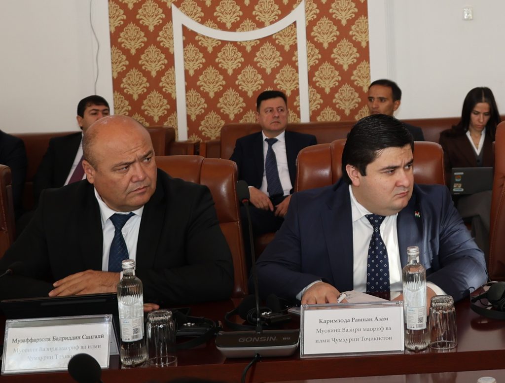 Дар идомаи ҷаласа роҳбари дафтари котиботи минтақавии Шарикии Глобалӣ дар соҳаи маориф, сафири Иттиҳоди Аврупо дар Ҷумҳурии Тоҷикистон, роҳбари бахши маорифи ЮНИСЕФ дар Ҷумҳурии Тоҷикистон ва дигар иштирокчиён баромад намуда, як қатор масъалаҳо, аз ҷумла, Стратегияи миллии рушди маорифи Ҷумҳурии Тоҷикистон барои давраи то соли 2030: вазъи иҷрои Нақшаи миёнамуҳлати амал барои солҳои 2024-2026, маблағгузорӣ ва идоракунии соҳаи маориф: моделҳои симулятсионии арзёбӣ ва маблағгузорӣ барои ҳар як хонанда, механизми ҳамоҳангсозии фаъолияти соҳа бо шарикони рушд: матритсаи ҷонибҳои манфиатдори соҳаи маориф, платформаи рақамии LEG.TJ, арзёбии сифати таҳсилот: рафти татбиқ ва дастовардҳои асосӣ, таҳсилоти фарогир: консепсия ва стратегияи миллӣ, ислоҳоти барномаи таълим: ислоҳот дар самти таҳсилоти миёнаи умумӣ, харитаи роҳи муносибати босалоҳият дар таълим ва чаҳорчӯбаи мониторинг ва арзёбӣ, трансформатсияи рақамӣ дар соҳаи маориф ва идоракунии иттилоот (EMIS ва E-Дониш)-ро мавриди таҳлилу баррасӣ қарор доданд.