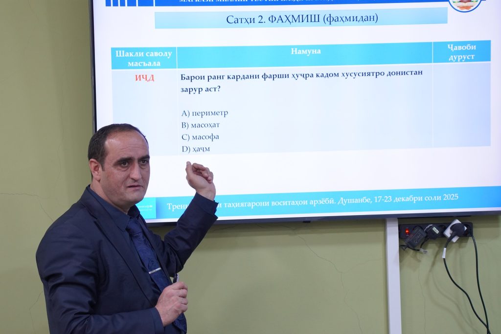 Рӯзи чоруми семинар доир ба таҳияи тест аз фанни математика дар доираи Лоиҳаи “Дастгирии татбиқи Стратегияи миллии рушди маориф дар Ҷумҳурии Тоҷикистон барои давраи соли 2030” Posted on 20.12.202519.02.2026Author admin 0