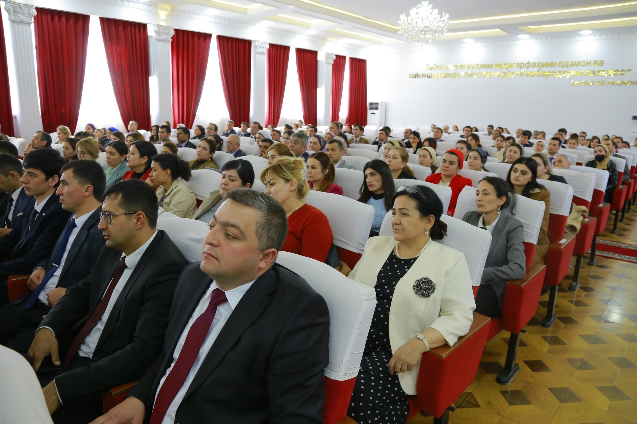 Зимни суханронӣ муовини вазири маориф ва илм меҳмононро хайрамақдам гуфта, аз дастовардҳои назарраси даврони Истиқлолияти давлатӣ ва сиёсати маорифпарваронаи Асосгузори сулҳу ваҳдати миллӣ – Пешвои миллат, Президенти Ҷумҳурии Тоҷикистон муҳтарам Эмомалӣ Раҳмон ёдовар шуд. Таъкид гардид, ки омӯзиши забонҳои хориҷӣ, бахусус, забони англисӣ, яке аз самтҳои афзалиятноки сиёсати давлатӣ ба шумор рафта, барои татбиқи барномаҳои навин ва баланд бардоштани сатҳи забондонӣ пайваста тадбирҳои муассир амалӣ мешаванд.