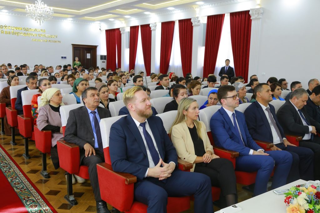 Мулоқоти расмӣ бо иштироки муовини вазири маориф ва илми Ҷумҳурии Тоҷикистон Лутфия Абдухолиқзода, ректори Донишгоҳ Ж. Гулназарзода, сардори раёсати муносибатҳои байналмилалии Вазорати маориф ва илм Н. Ғафуриён ва роҳбарони як қатор муассисаҳои таҳсилоти олии кишвар дар фазои ҳамдигарфаҳмӣ ва ҳамкории созанда баргузор гардид.