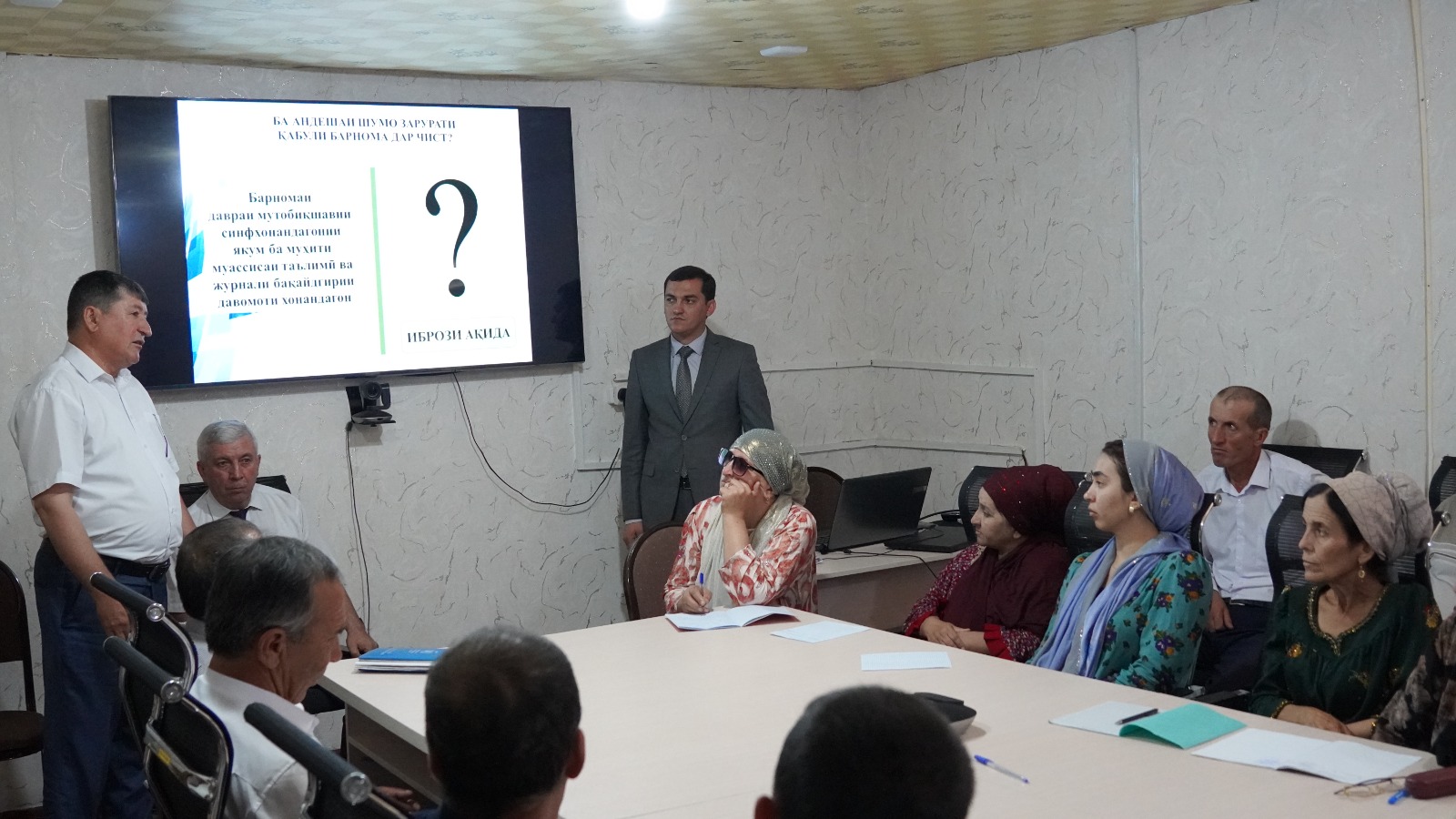 29-30 июли соли 2025 аз ҷониби кормандони Маркази ҷумҳуриявии таълимию методии назди Вазорати маориф ва илми Ҷумҳурии Тоҷикистон семинари омӯзишӣ таҳти унвони «Татбиқи Барномаи давраи мутобиқшавии хонандагони синфҳои якум ба муассисаи таълимӣ барои солҳои 2025–2026» бо мушовирони синфҳои ибтидоии кабинетҳои методии шуъбаи маорифи шаҳри Бохтар ва Кӯлоби вилояти Хатлон баргузор гардид.