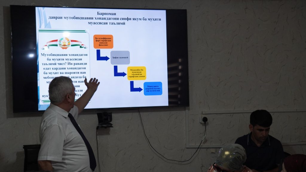Ҳамзамон, иштирокчиён дар гурӯҳҳо тақсим шуда, дар таҳияи нақшаи амалӣ ва пешниҳодҳои методӣ ҷиҳати беҳтарсозии раванди мутобиқшавии кӯдакон саҳм гирифтанд. Семинар бо таҳлили таҷрибаи муассисаҳои алоҳида, муаррифии маводҳои таълимӣ-методӣ ва табодули афкор миёни иштирокчиён идома ёфт.